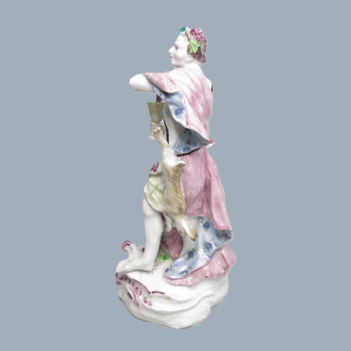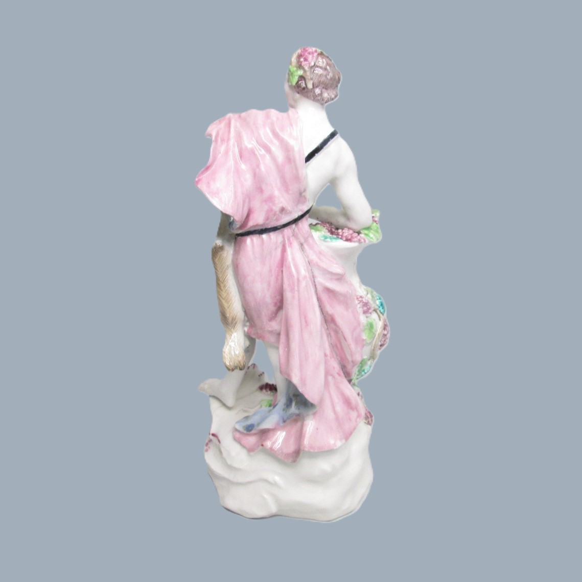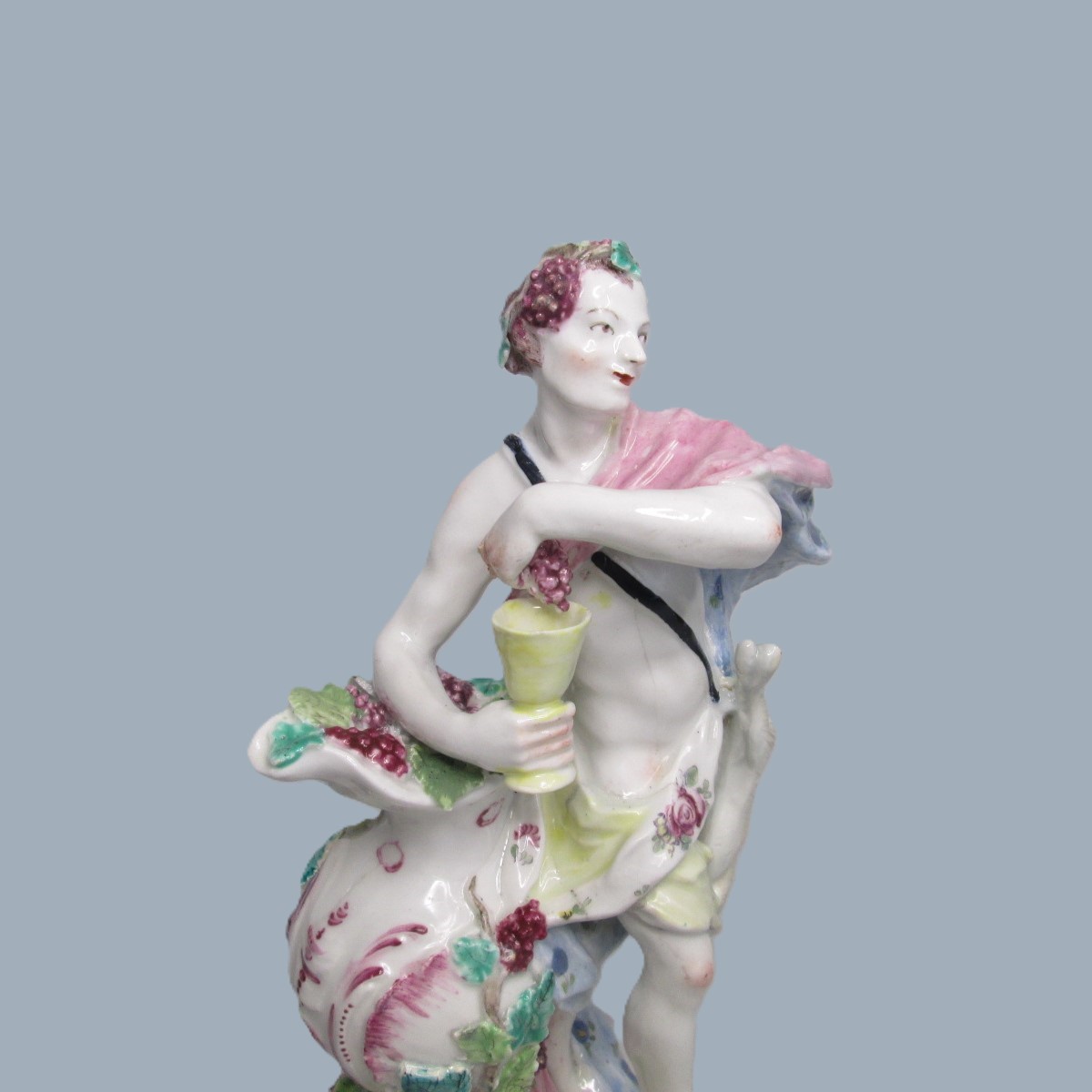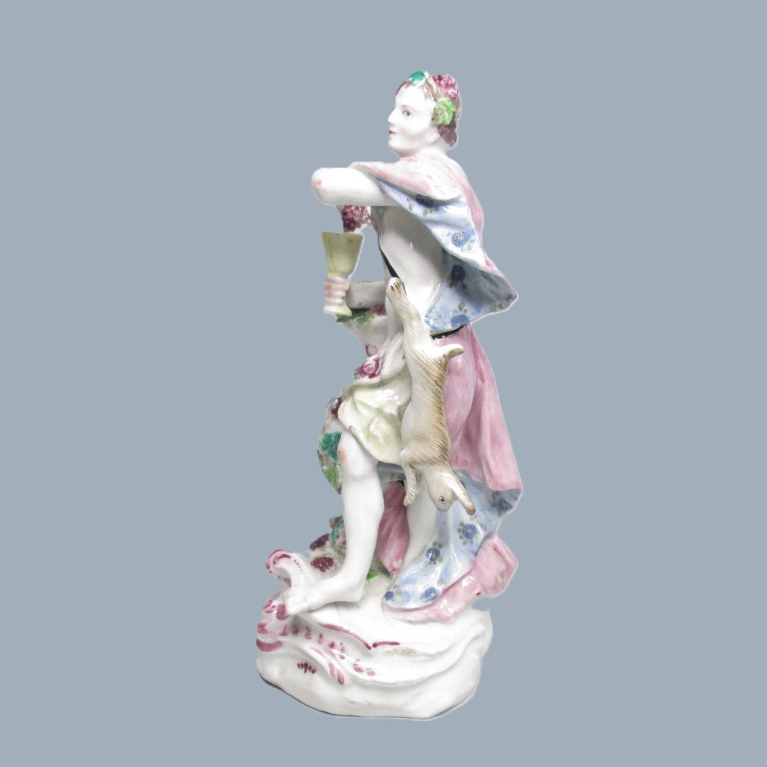 A Bow porcelain figure of Bacchus the Roman God of wine making, agriculture and fertility, Circa 1755.