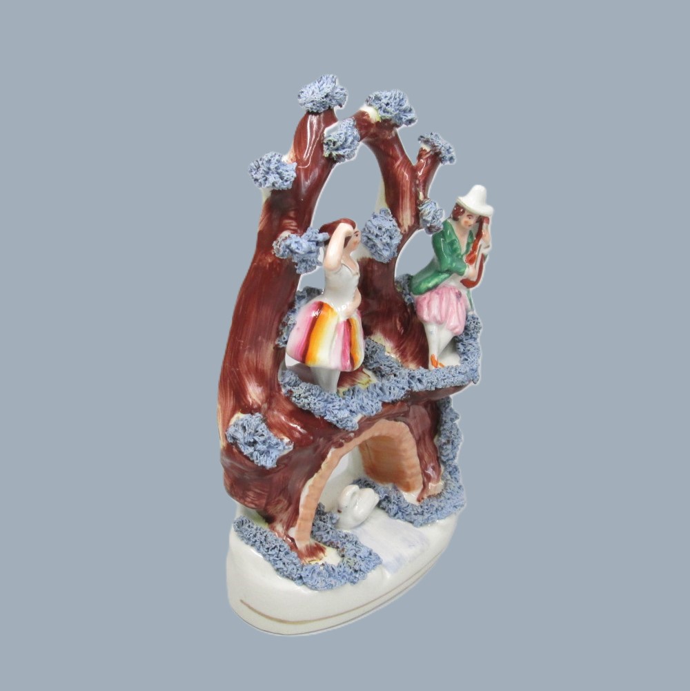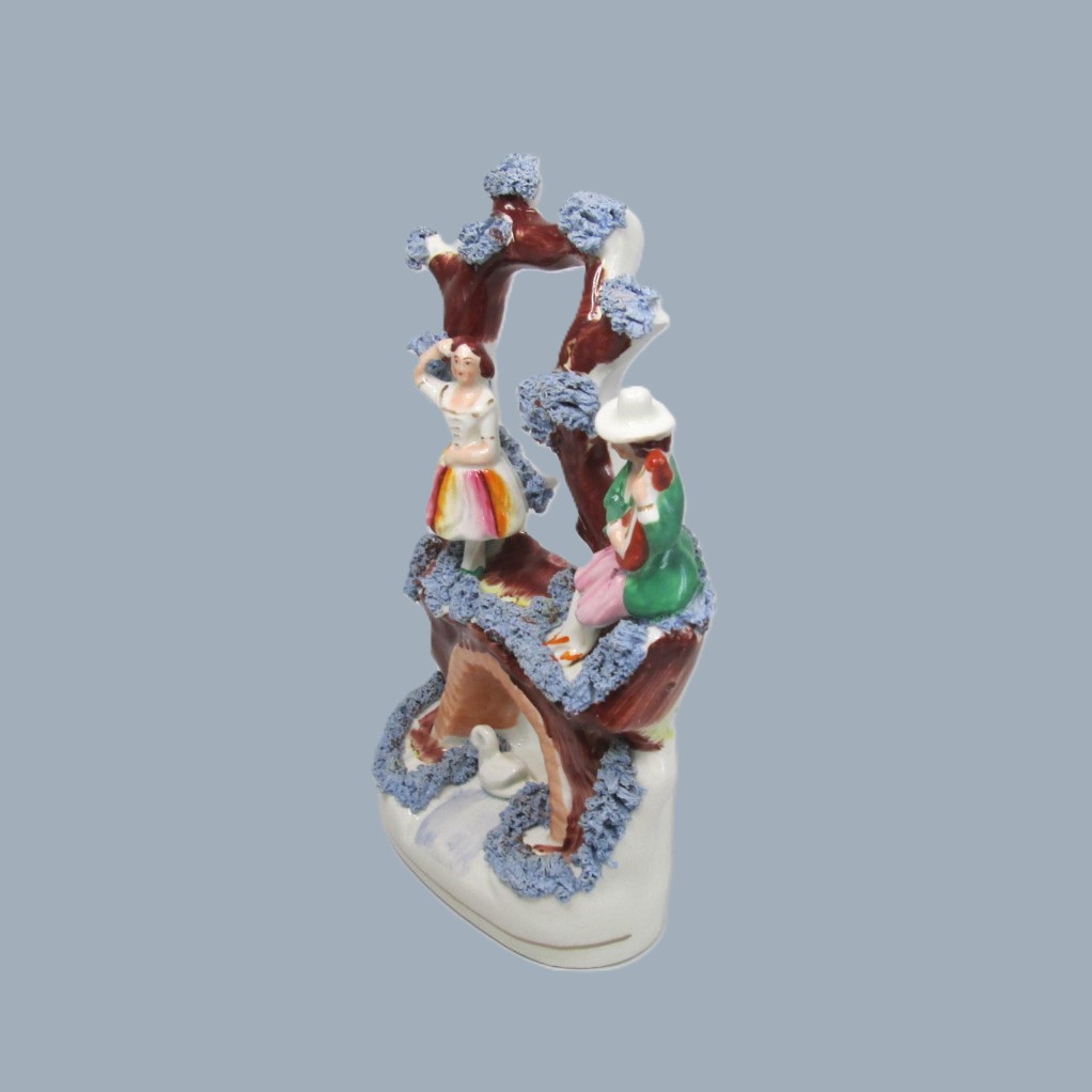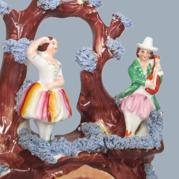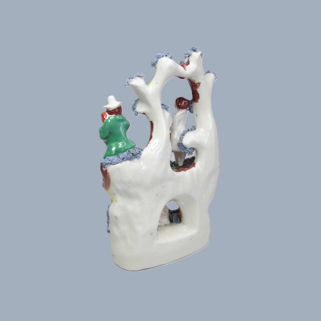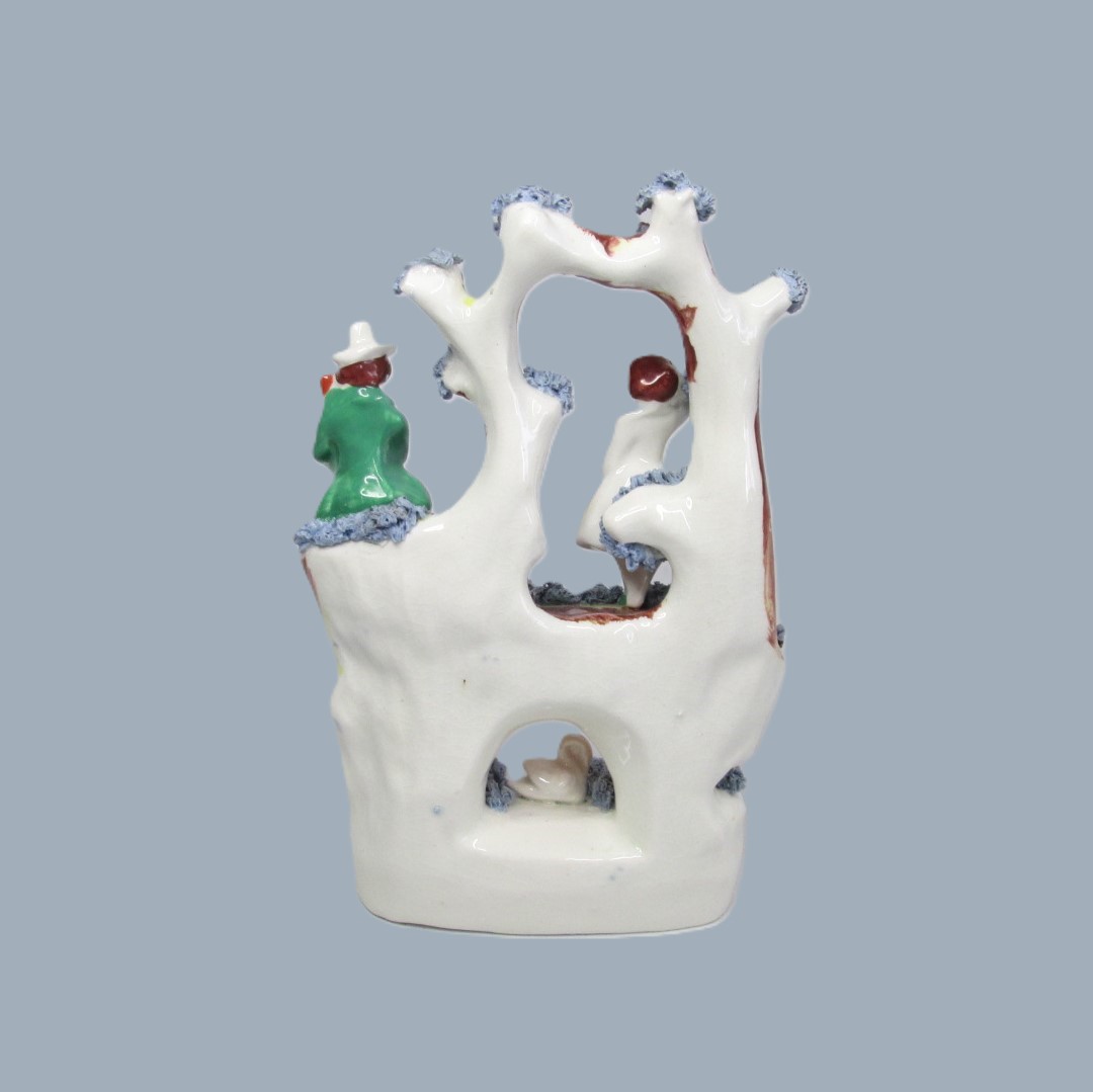 Audrey Dudson named this group “Blue Parsley” figures, this refers to the shredded clay which has been coloured blue and then applied to the extremities of this piece and also can be seen on many other animals and groups from this factory.
