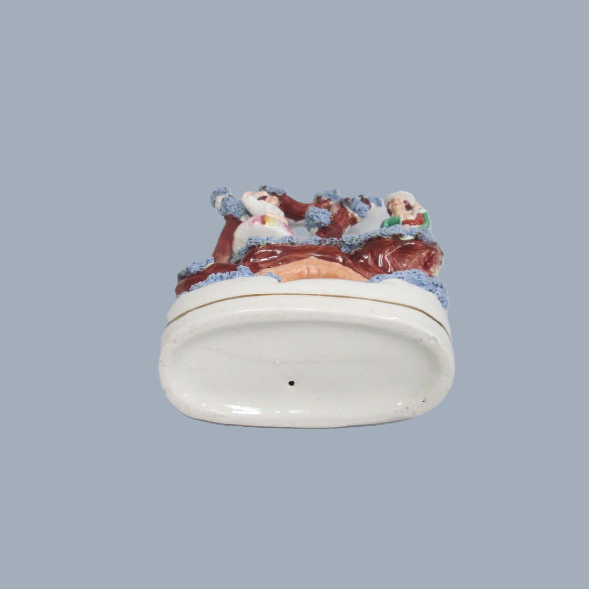 The figure was probably copied from the Lithograph of the ‘Polka ‘ which portrays Catarina and Diavolino, from the Grand Ballet by M Perro, Catarina, ou la Fille Du Bandit, which was first performed at Her Majesty’s Theatre on 3rd March 1846. Catarina, who was the leader of a band of robbers was loved by both her Lieutenant Diavolino and the band’s captive slave, artist Salvator Rosa,