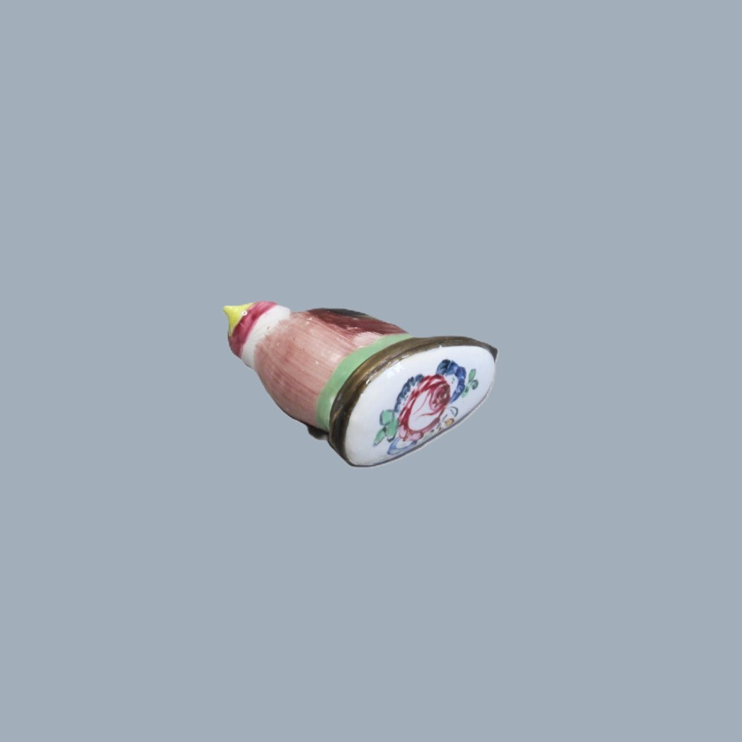 This colourful charming Bird was manufactured by the Huguenot French Protestant craftsmen who were highly skilled in the art of enamelling and fled to England to avoid religious persecution in the 16th to 18th centuries in Catholic dominated France.