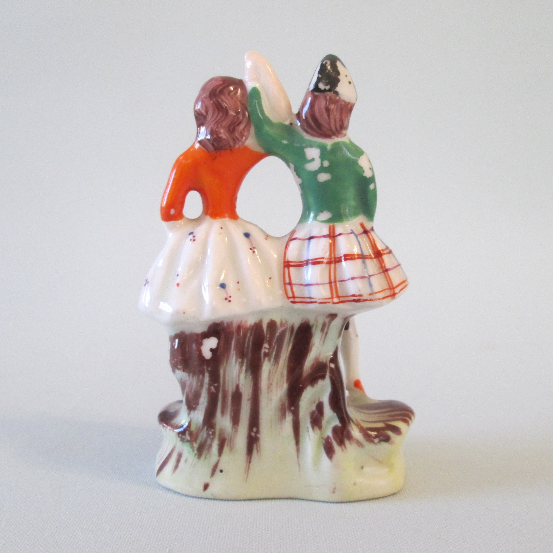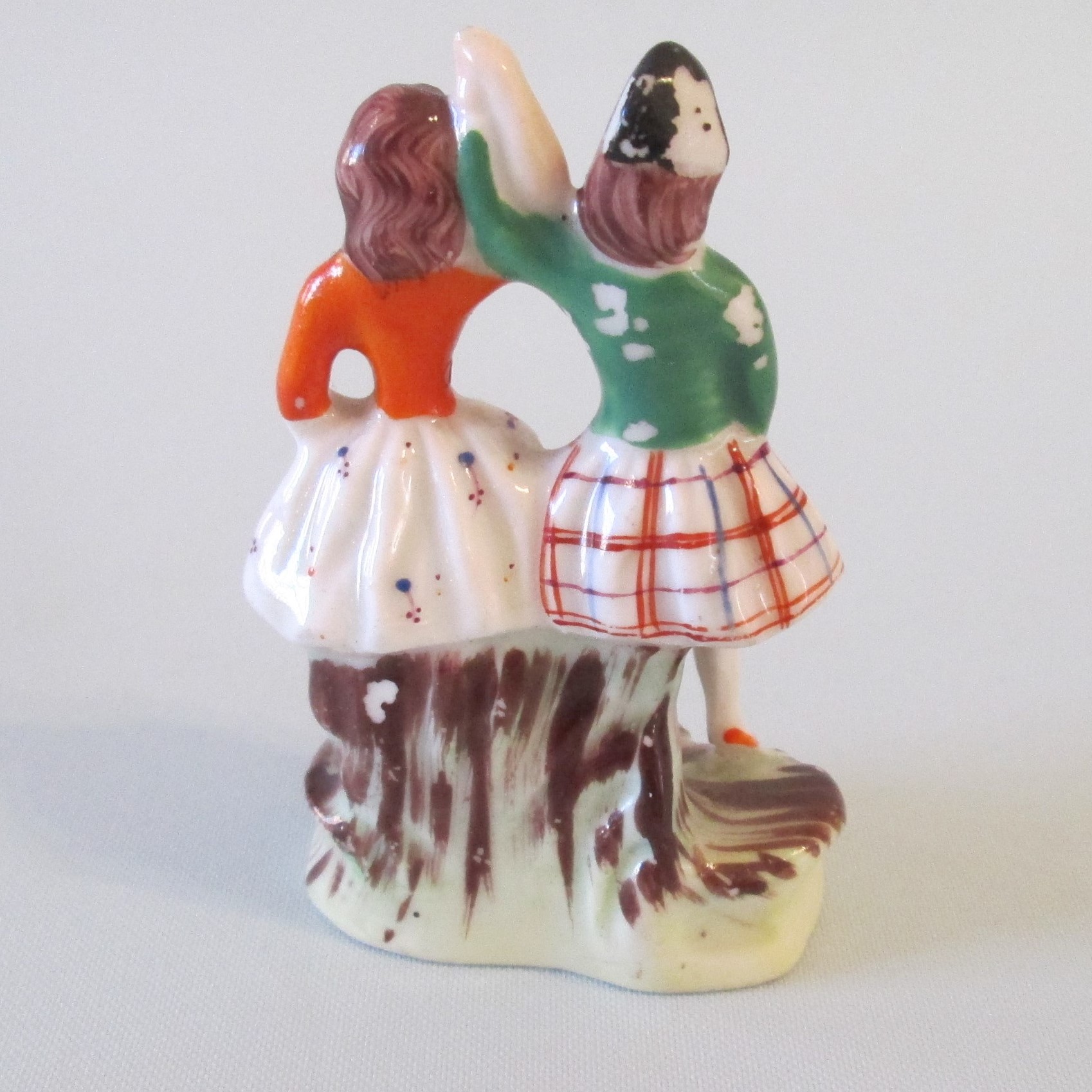 A miniature Staffordshire figure of Scottish dancers. Circa 1880