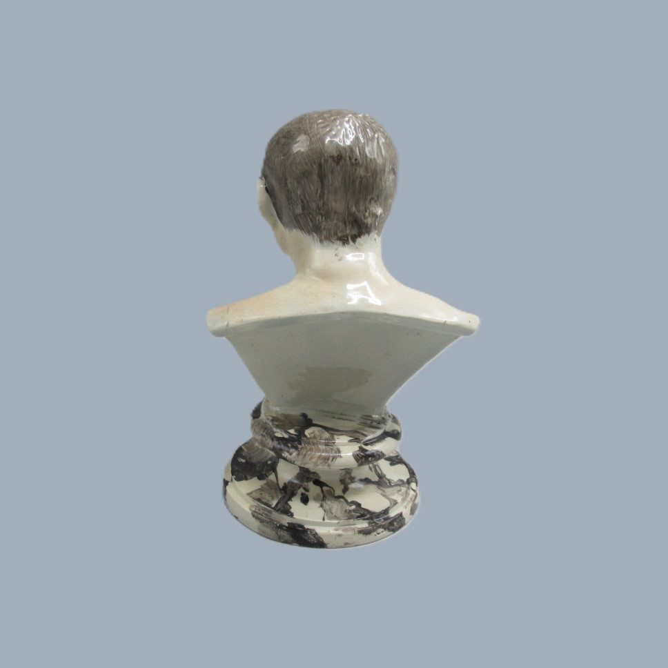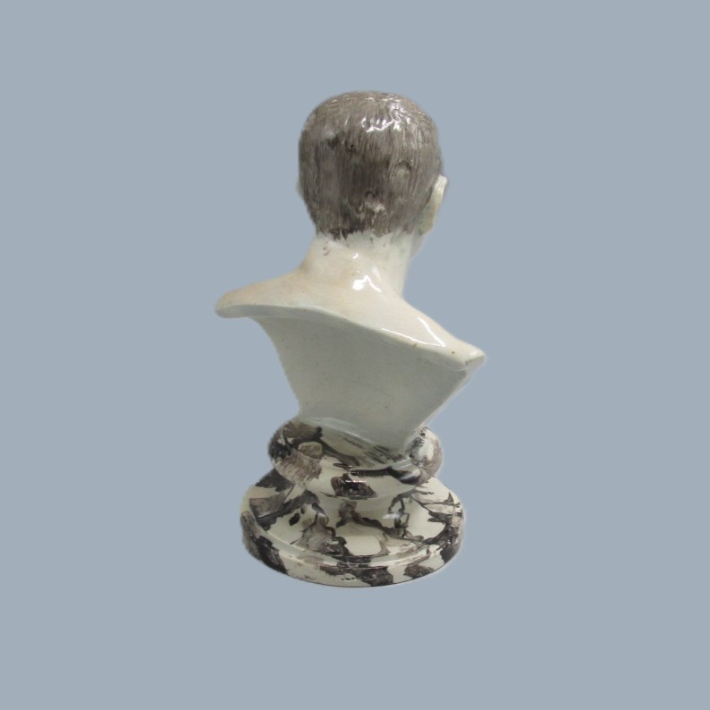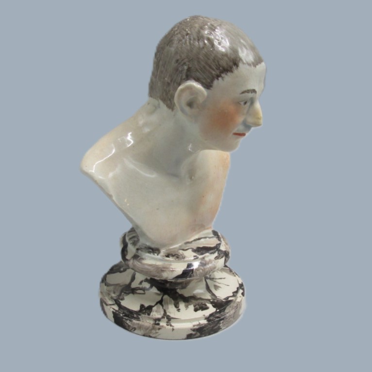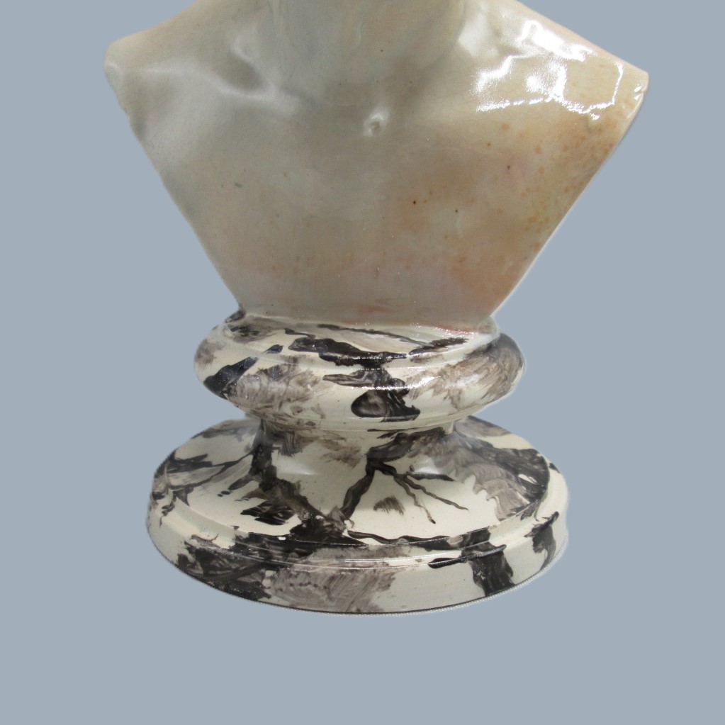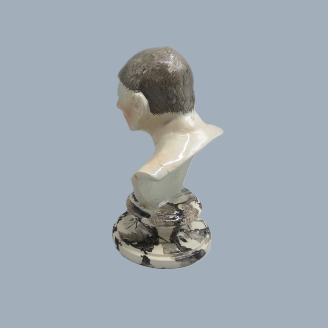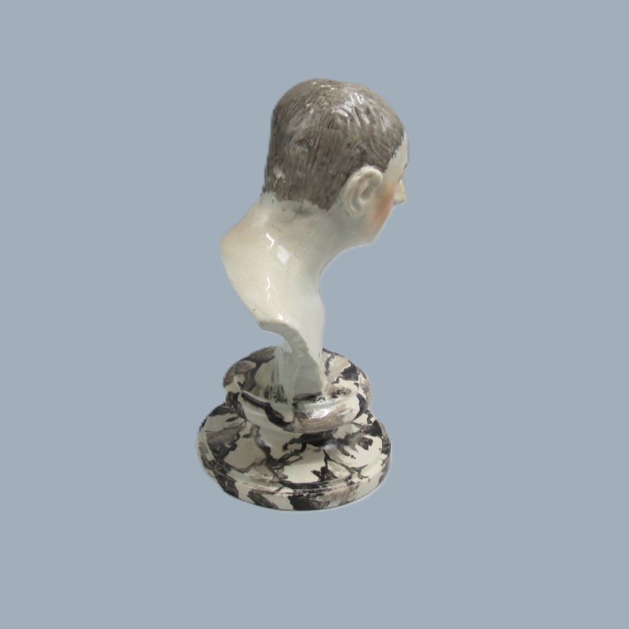 A Staffordshire small pottery bust of Seneca mounted on a marbleised soccle base. Circa; 19th Century