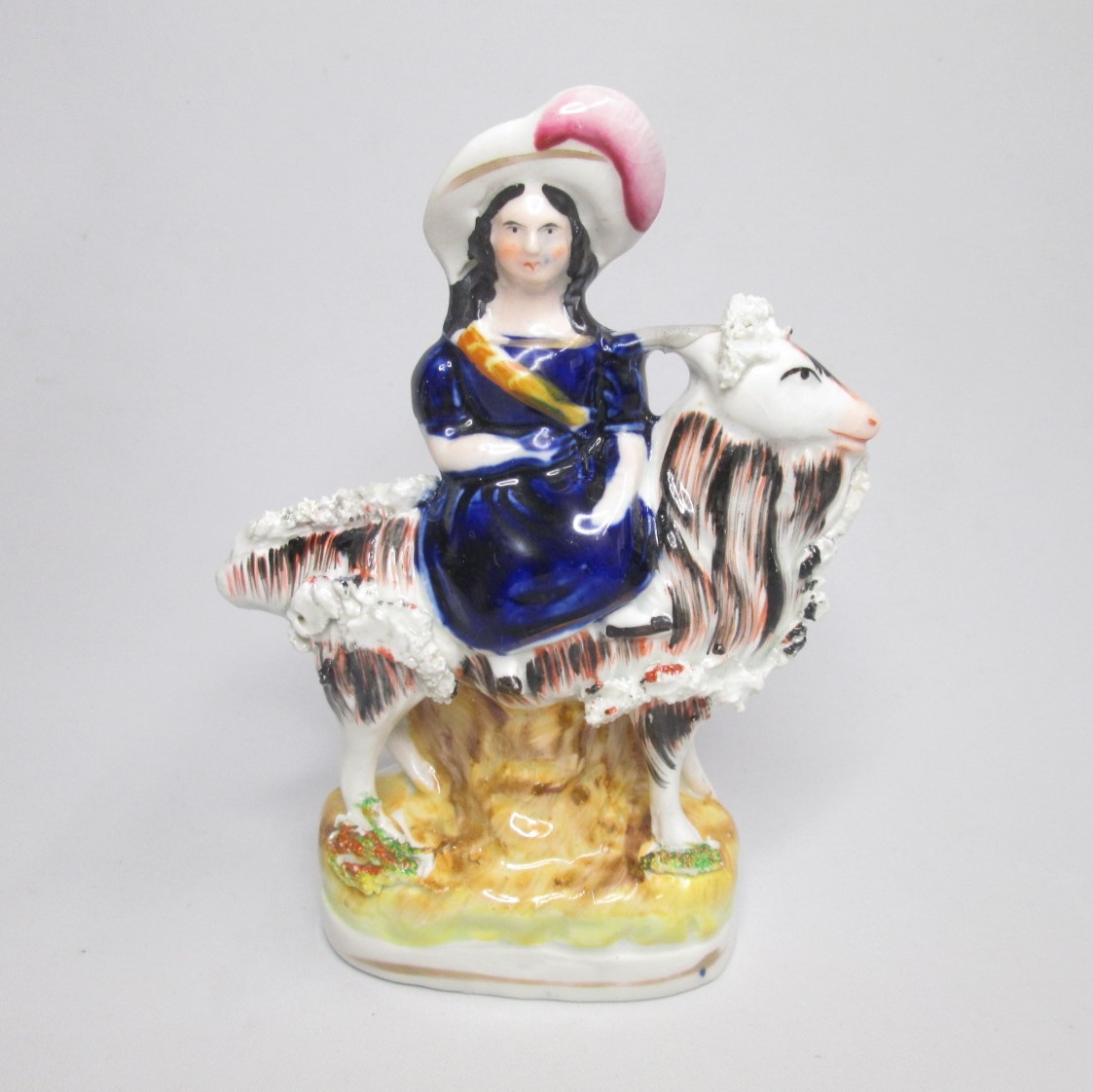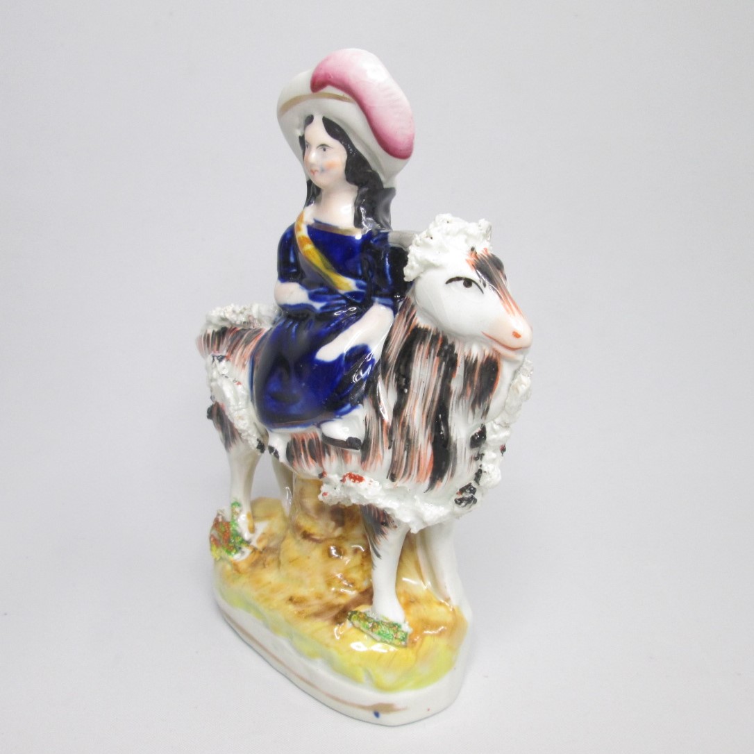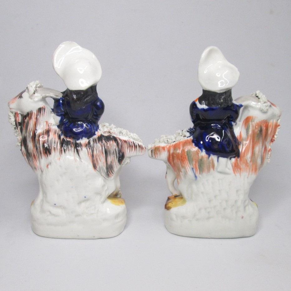 A pair of Victorian figures of the Royal children, The Princess Royal and the Prince of Wales seated on goats. Circa 1855