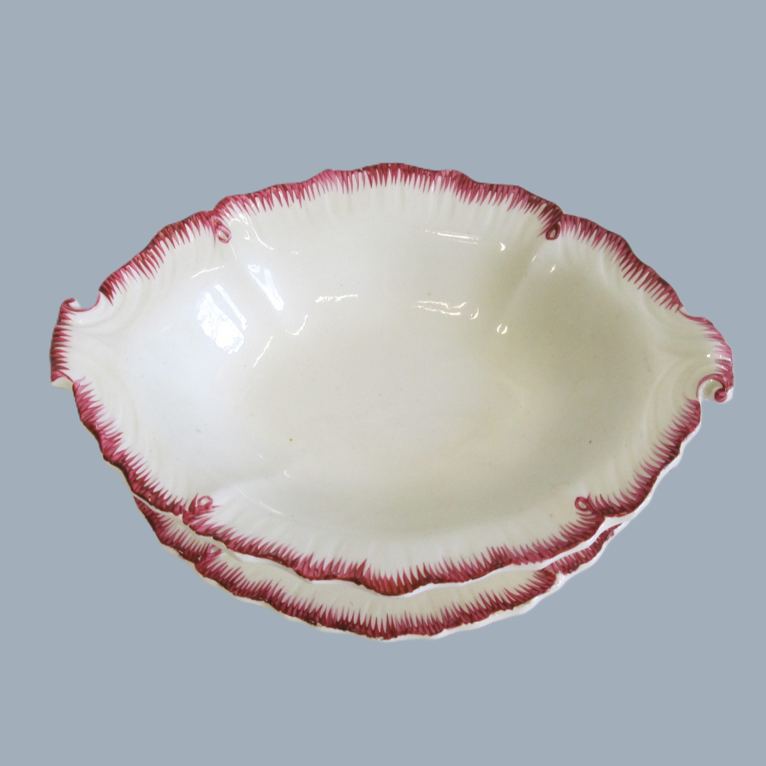 A Delightful small unmarked but probably Neale & Co English Creamware oval shell-edge dish and stand,