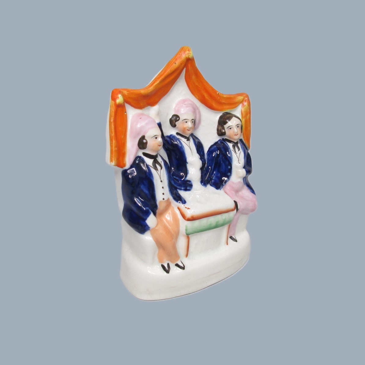 A Staffordshire figure depicting Auld Lang Syne, taken from an illustration of the poem by John Masey Wright and John Rogers. Circa 1855